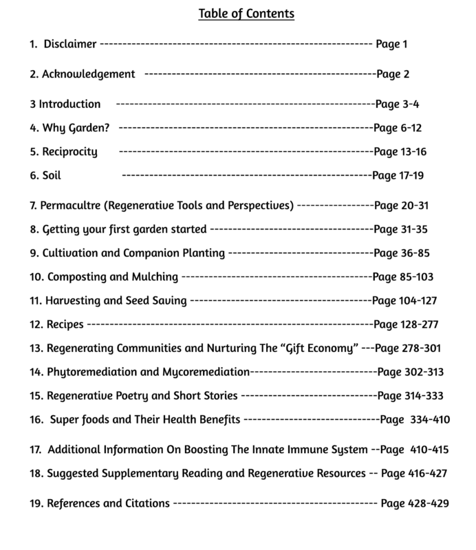 This book includes over 400 Pages filled with practical gardening/preserving techniques, regenerative ideas and delicious recipes that offer the reader a ‘passport for the senses’ allowing them to experience flavors from far away lands (includes recipes with cultural roots in over 20 countries spreading over 4 continents!).